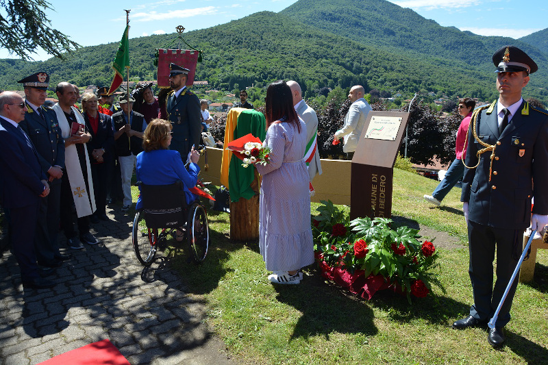 Ha chiuso le allocuzioni il Prefetto di Varese, Dott. Salvatore Pasquariello, il quale ha rinnovato la propria stima, affetto e vicinanza alle Fiamme Gialle di Varese e d’Italia rammentando a tutti i partecipanti l’impegno profuso quotidianamente dal Corpo a tutela dell’interesse pubblico rivolgendo altresì un commosso ricordo a tutti i finanzieri caduti in servizio. Si è proceduto poi allo scoprimento della targa commemorativa, alla benedizione dell’Area Giochi ed allo scoprimento di una scultura lignea, realizzata dall’artista Sandro Morandi, raffigurante il “Fregio” del Corpo. Infine, a coronamento di una splendida giornata di festa, la Signora Sara Losi Boldrini, consorte del Sindaco di Brezzo di Bedero, ha dato lettura della “Preghiera del Finanziere”.