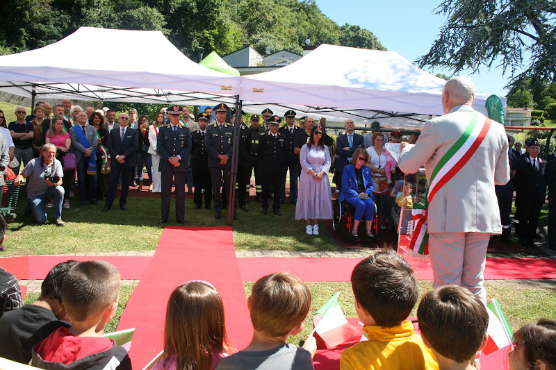 A seguire il Comandante Provinciale della Guardia di Finanza di Varese, Generale di Brigata Crescenzo Sciaraffa, nel corso del proprio intervento ha evidenziato come l’intitolanda Area Giochi, costituisca un dono per le future generazioni, rappresentate nell’occasione da un gruppo di alunni della Scuola dell’Infanzia e del Micronido di Brezzo di Bedero.